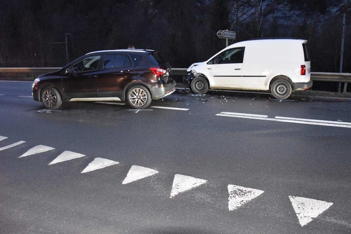 Ein ebenfalls talauswärts fahrender 58-jähriger Lieferwagenchauffeur erkannte die Situation zu spät und kollidierte trotz eingeleiteter Vollbremsung mit dem stehenden Auto.