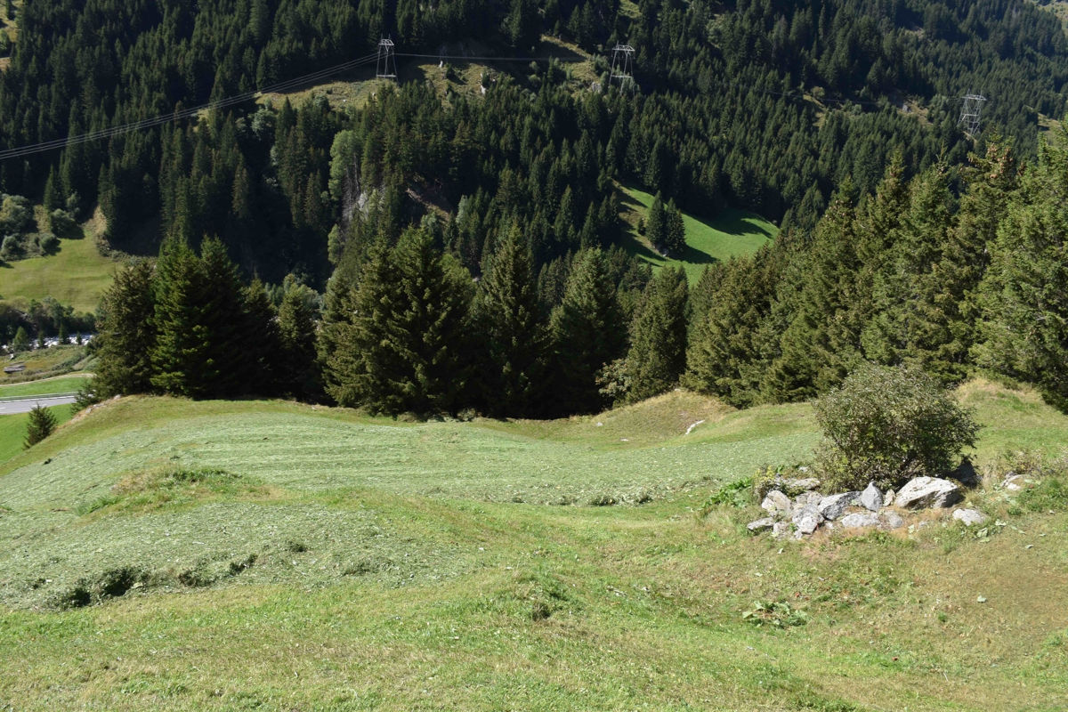 Das landwirtschaftliche Gefährt rutschte mehrere hundert Meter durch Wald und über Wiesland hinunter, bis es vor der Passstrasse zum Stillstand kam.