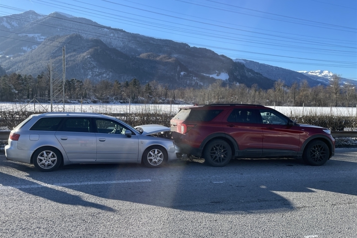 Kurz nach 14 Uhr fuhr ein Personenwagenlenker auf der Nordspur der A13 bei der Ausfahrt Heidiland heftig auf das Fahrzeug vor ihm auf, als dieses im Kolonnenverkehr stillstand. Die Rettung Chur überprüfte die Fahrzeuginsassen medizinisch. Während der Bergungsarbeiten leitete die Kantonspolizei Graubünden den Verkehr einspurig an der Unfallstelle vorbei.